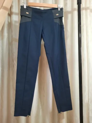 Pantalone da uomo Griffoni di colore blu. - Chiusura con bottone e zip. - Tasche posteriori con bottone. - Logo discreto sul retro.