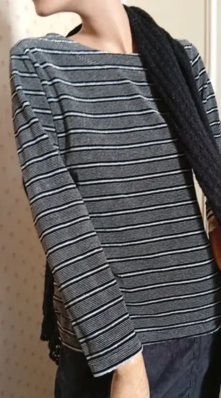 Maglia a maniche lunghe con fantasia a righe, con lurex - Girocollo. - Tessuto morbido.
