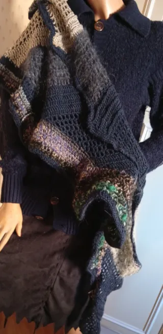 Maxi sciarpa in lana, mohair e cotone perfetta per completare il tuo look. - Morbida al tatto - Design a righe - Lavorazione a maglia