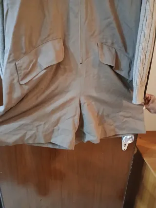 Tutina comoda con zip frontale. Con maniche e collo in maglia con tasche laterali e un tsschino sul petto con zip zip -Taglia 40 - Zip intera frontale - colore beige e cachi