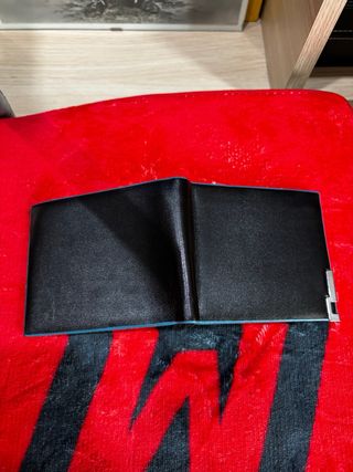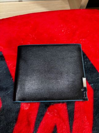 Elegante portafoglio in ecopelle, perfetto per ogni occasione. - Materiale: ecopelle - Colore: Nero - Dettagli: Inserti blu