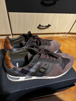 Sneakers Blauer da uomo con un mix di materiali e fantasie. - Tomaia in camoscio e tessuto. - Dettagli in pelle. - Inserti a quadri. - Logo Blauer USA sul lato.