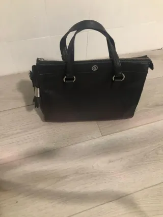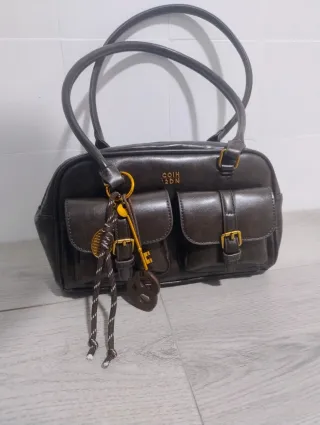 Elegante borsa vintage Coin 2dn, un accessorio che aggiunge un tocco di classe. - Colore marrone scuro. - Dettagli con fibbie e tasche frontali. - Charm a forma di chiave e moneta pendente.