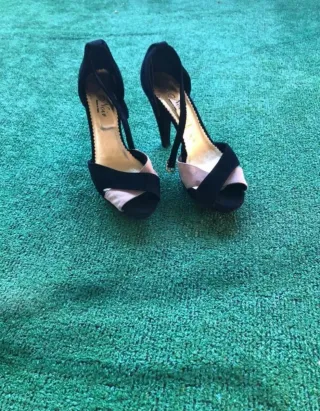 Eleganti tacchi in velluto, perfetti per ogni occasione. - Design a punta aperta con fasce incrociate. - Tacco alto e sottile. - Finitura interna dorata con logo del marchio.