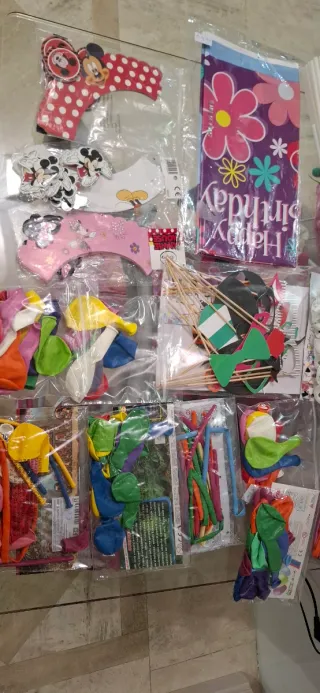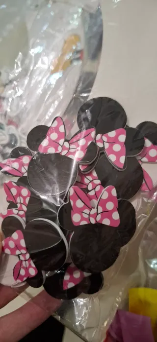 Set di accessori per feste e addobbi. - Include palloncini colorati. - Decorazioni a tema con Minnie. - Bastoncini per decorazioni.