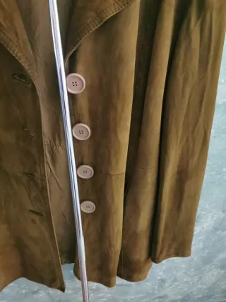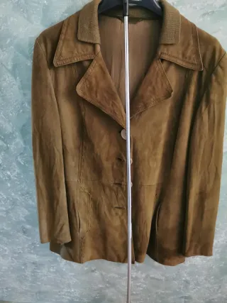 Giacca in camoscio dal taglio classico. - Materiale: camoscio - Colletto in maglia - Chiusura con bottoni - Tasche frontali applicate