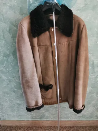 Elegante giacca in montone con dettagli in pelliccia nera. Un capo caldo e stiloso. - Materiale esterno in pelle scamosciata. - Fodera interna in pelliccia sintetica. - Chiusura con bottoni. - Tasche frontali con bordo in pelliccia.