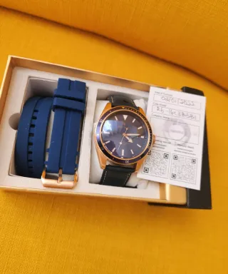 Meraviglioso orologio automatico Revelot R6 Diver del 2022.Microbrand della Malesia.Introvabile.Indossato due o tre volte.Pari al nuovo. Materiali superbi.Cassa color oro.Quadrante blu.Due cinturini originali logati "revelot".Uno in pelle e altro silicone.Movimento a vista Myota.Completo di scatota e tagliando garanzia.Vendo e non accetto resi. -Diametro cassa circa 43 mm - Movimento automatico - Ghiera girevole unidirezionale - Resistenza all'acqua 100m