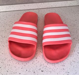 Vendo ciabatte unisex Adidas, perfette per la piscina o il tempo libero color salmone con strisce bianche NR. 41/42 Queste ciabatte sono perfette per fare la doccia dopo aver nuotato in piscina o altro....L'ammortizzazione morbida offre un relax imbattibile e il massimo comfort. - Design a tre strisce iconico. - Colore salmone. - Usate poco in ottime condizioni genarali senza segni d’usura.