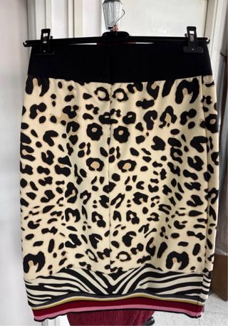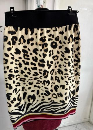 Gonna con fantasia maculata e dettagli animalier. - Vita alta elasticizzata. - Stampa leopardata. - Fondo con fantasia zebrata. - Bordi a contrasto colorati.