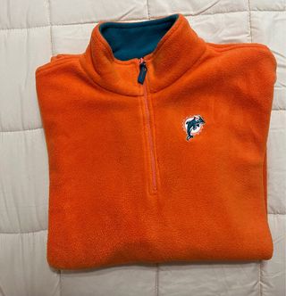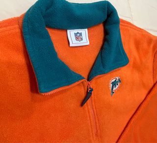 Maglione in pile con zip corta e logo NFL. - Colore arancione con colletto interno blu petrolio. - Logo ricamato sul petto.