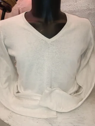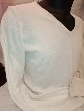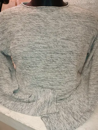 Maglioncino sportivo con scollo a V, perfetto per un look casual. - Tessuto mélange grigio e bianco. - Vestibilità comoda. - dettagli e misure precise nelle foto 💯🔝