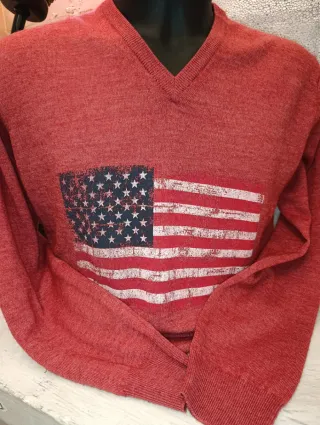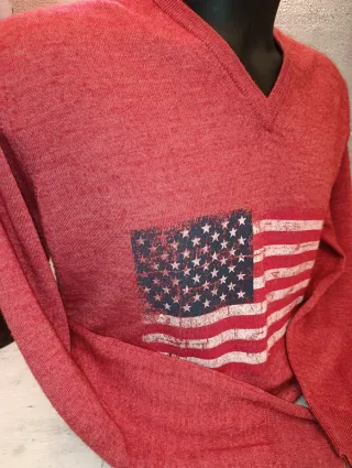 Maglioncino con scollo a V e stampa della bandiera americana. - Tessuto morbido e confortevole. - Design a tema patriottico. - Maniche lunghe. - dettagli e misure precise nelle foto 💯🔝