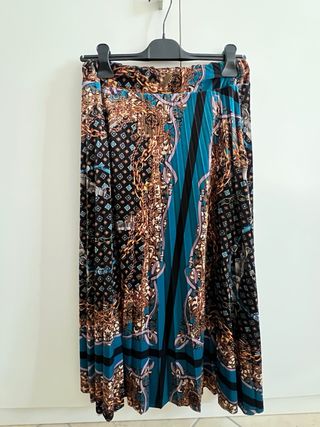 Gonna lunga con stampa. Tessuto al tatto simile velluto. Mai indossata, nuova. Veste S/M
