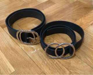 Set di due cinture nere di Stradivarius con dettagli argentati. In perfette condizioni. Insieme 10€ o separatamente 6€. - La prima misura 89cm e ha diversi fori. - La seconda misura 98cm e ha diversi fori.
