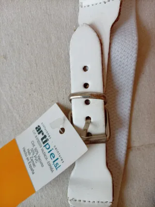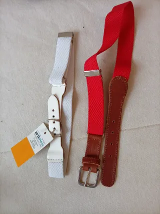 Set di due cinture elastiche del marchio Artipiels. - Taglia bambino - Una cintura bianca con dettagli in pelle e fibbia metallica. - Una cintura rossa con dettagli in pelle e fibbia metallica. - Prodotto in Spagna.