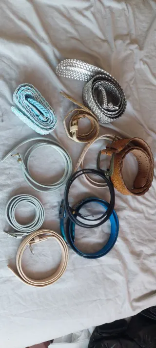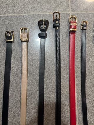 Set di sei cinture da donna in vari stili e finiture, vendute ciascuna a 3€, e confezionate in pacchetti multipli. Le spedizioni sono effettuate su tutte le isole tramite l'app Wallapop e sulla penisola tramite posta certificata a carico dell'acquirente.