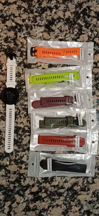 Orologio sportivo Garmin Forerunner 245 in buone condizioni. Con 7 cinture, alcune nuove. Design elegante e funzionale. Cintura comoda e regolabile.