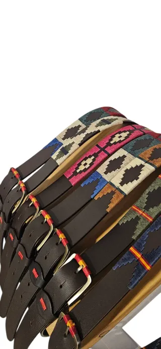 Cinture in stile argentino con design ricamati. Realizzate con pelle e tessuti di alta qualità. Fibbie metalliche resistenti.