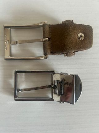 Set di cinture in pelle con diverse fibbie. 5€ a cintura!!!! - Fibbia argentata con design. - Fibbia rettangolare dorata. - Fibbia argentata con design camouflage. - Fibbia argentata con design ondulato. - Fibbia argentata con design a scudo.