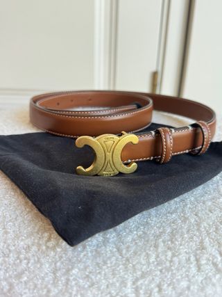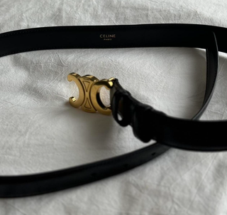 Cintura originale Celine, usata solo un paio di volte. È perfetto per aggiungere un tocco elegante a qualsiasi look, ma ora non ne ho quasi bisogno. - Fibbia Triomphe dorata. - Design classico e versatile.
