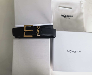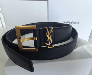 Cintura elegante da donna con fibbia dorata. Nella seconda foto si vede il marchio e sulla fibbia sono incise anche le iniziali.