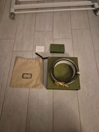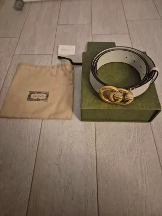 Attenzione amanti della moda! Vendo cintura Gucci bianca con fibbia dorata, quasi nuova e con scatola originale. Ideale per completare il tuo outfit con un tocco di lusso ✨👔