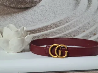 Cinturone elegante con l'iconico logo GG. 110 cm. - Fibbia dorata. - Cinturino in pelle bordeaux.
