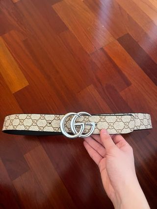 Cinturone reversibile elegante del marchio Gucci. Fibbia con l'iconico design Doppia G. Un lato in beige con monogramma. L'altro lato in nero liscio. #cinturone #gucci #doppiag #reversibile #accessori #moda #unisex #lookurbano #cinture