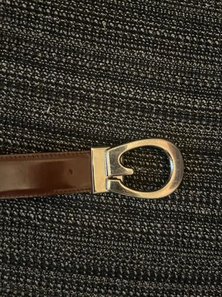 Cintura usata, in pelle marrone e nera con fibbia dorata. Reversibile dal nero al marrone e viceversa. - Design classico ed elegante. - Materiale in pelle di alta qualità. Unica cosa che devo segnalare é che noi abbiamo aggiunto ulteriori tre(3) buchi.
