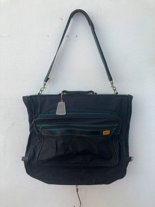 Borsa Porta abiti da viaggio LEOPARD Creata per proteggere i vestiti dalle pieghe Colore Nero con impunture celesti Materiale esterno Nylon Poliestere anti-strappo ed idro-repellente Materiale interno Nylon Dimensioni: Larghezza 57 cm x Lunghezza 52 cm (105 cm aperta) x Spessore 10 cm Peso a vuoto: 1950 grammi Manico comodo in pelle imbottita Tracolla in Nylon regolabile in lunghezza da 66cm a 110cm 2 appendini interni e 2 grucce 2 tasche esterne anteriori per cravatte, cinture, biancheria, laptop 1 tasca esterna posteriore grande per scarpe, biancheria, ecc Lungo e robusto gancio (con catenella) per appendere la borsa
