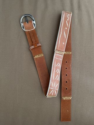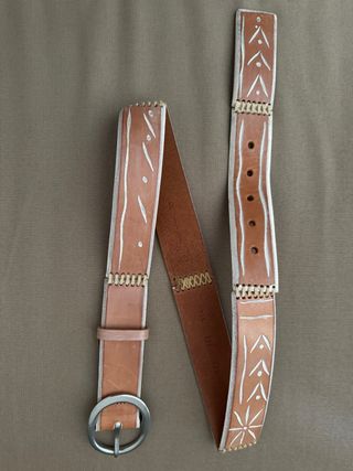 Cintura in pelle Claudio Orciani con incisioni decorative. - Materiale: Pelle - Colore: Marrone e bianco Come da fotografie Per qualsiasi informazione non esitate a contattarmi!