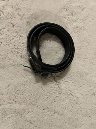 Cinturone in pelle di colore nero. Lunghezza totale 125 cm Larghezza 4 cm Fibia 10 × 6.5 cm - Fibbia metallica logata - Fori regolabili.