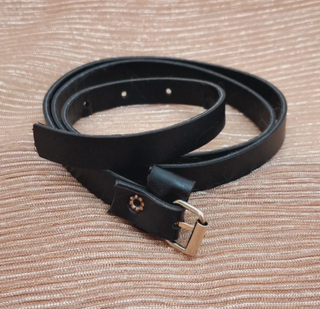 Elegante cintura nera skinny con fibbia metallica dorata. Perfetta per aggiungere un tocco di stile a qualsiasi outfit. - Design sottile e versatile. - Chiusura a fibbia in metallo.
