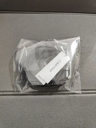 Cintura Calvin Klein uomo in vera pelle marrone scuro (dark brown), praticamente nuova con etichette originali ancora attaccate. Dettagli principali: Materiale: vera pelle (genuine leather) di ottima qualità, morbida e con finitura leggermente testurizzata Colore: marrone cioccolato / dark brown Larghezza: circa 3,5 cm (35 mm) Lunghezza: 90 cm (taglia indicata 90 cm / 36 inch) – Fibbia: rettangolare in metallo argentato lucido con logo "Calvin Klein" inciso/inciso sulla fibbia stessa Logo sulla pelle: embossato "Calvin Klein" ripetuto lungo il lato interno della cintura, molto nitido e profondo (tipico dei modelli autentici) Nuova