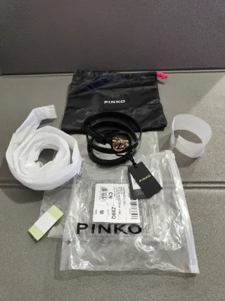 Cintura Pinko originale Love Berry H1 (alta circa 1-2 cm, modello super slim/hi) in morbida pelle di vitello nera (vitello genuino), colore BLACK, taglia M. 85 cm Fibbia iconica Love Birds in metallo galvanica antique gold / gold, con doppio uccellino intrecciato (simbolo Pinko per eccellenza) Pelle liscia di alta qualità con bordo rifinito e impresso "PINKO GENUINE LABEL MADE IN CHINA" (standard per molti loro prodotti) Regolabile e comodissima da indossare alta in vita o sui jeans Condizioni: NUOVA, mai indossata, perfetta, ancora nel packaging originale (sacchetto in raso Pinko con logo + bustina protettiva + tags attaccati