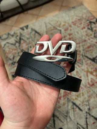 Cintura con un'elegante fibbia a forma di logo. - Fibbia in metallo argentato con logo DVD. - Cintura in ecopelle nera.