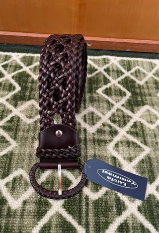 Cintura da uomo in vera pelle, lavorazione intrecciata e dettagli curati. - Lunghezza totale 120 cm. - Fibbia rotonda in metallo. - Design unico e versatile.