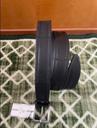 Cintura da uomo con sistema a cricchetto (rogolabile) , realizzata in pelle. A differenza delle cinture tradizionali con fori, questa presenta un meccanismo a scorrimento che consente micro-regolazioni per una vestibilità personalizzata e confortevole. Caratteristiche Principali Materiale: Vera pelle con finiture di alta qualità. Design: Presenta un aspetto raffinato e liscio, adatto sia per abiti formali che per outfit casual, come i jeans. Funzionalità: Il sistema di chiusura automatico/a scorrimento elimina la necessità di fori e la coda della cintura può essere nascosta per un look più pulito ed elegante.