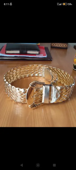Elegante cintura con una trama intrecciata che dona un tocco di stile. Lunghezza 100cm. - Fibbia dorata con dettagli. - Design a treccia. - Materiale lucido.