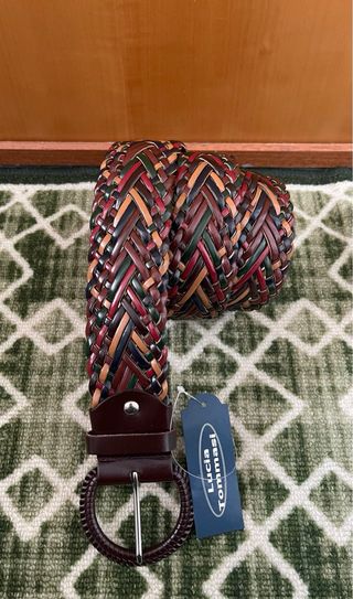 Cintura da donna in vera pelle, un accessorio elegante e versatile. - Lunghezza: 115 cm - Design intrecciato multicolore - Fibbia in metallo argentato