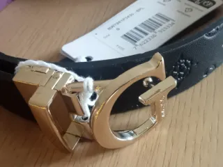 Elegante cintura Guess double face, perfetta per completare ogni outfit. - Design double face per maggiore versatilità. - Fibbia color oro con logo Guess. - lunghezza 98 cm