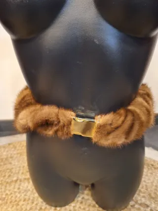 Cintura in pelliccia con fibbia dorata