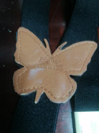 Bretelle eleganti con un dettaglio a forma di farfalla. - Bretelle nere. - Dettaglio a forma di farfalla in ecopelle marrone. - Chiusure metalliche dorate.