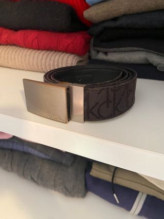 Cintura in pelle con fibbia metallica. Misura 90. Nuova mai usata. - Logo Calvin Klein impresso. - Design elegante e versatile.