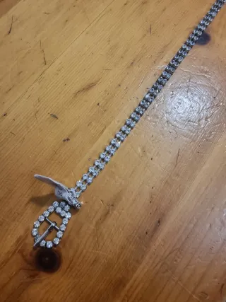 Elegante cintura con doppio strato di strass e fibbia. Alta bigiotteria mai indossata. - Dettagli scintillanti. - Fibbia decorata.