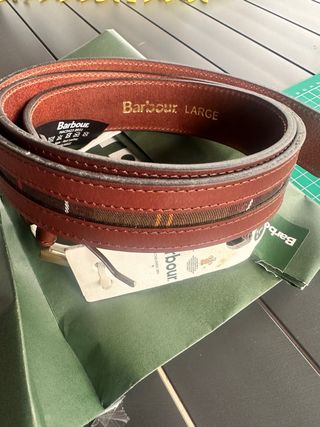 Cintura Barbour Pelle Marrone Tartan L 120cm