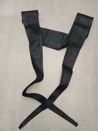 Cinta - similpelle - senza fibbia - colore nera e internamente verde scuro - lunghezza 210 cm circa. Imperfezioni: alcuni segni all'interno, come da foto. Ottime condizioni - Materiale: similpelle - Design senza fibbia