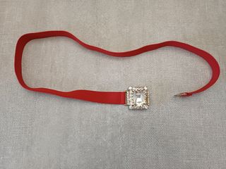 Cinta Sandro Ferrone - elasticizzata - fibbia gioiello quadrata decorata da strass luminosi - colore rosso - lunghezza 73 cm circa - larghezza 2 cm circa. Ottime condizioni