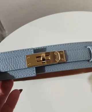Cintura vera pelle Made in Italy colore Celeste